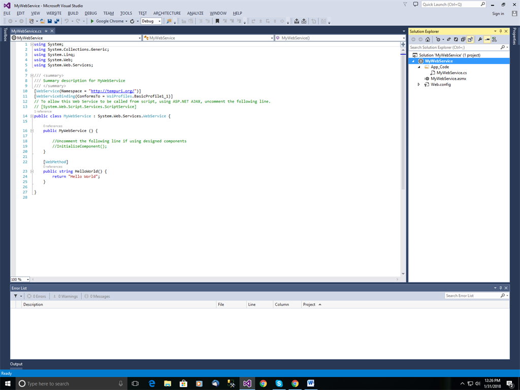 Create “ASP.NET Empty Web Site”. (name it say “MyWebService”) and save it in the desired location.