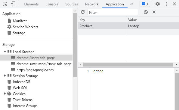 As you can see there is one section inside the storage section under the application tab related to local storage and the key and value which is stored in the key-value format.