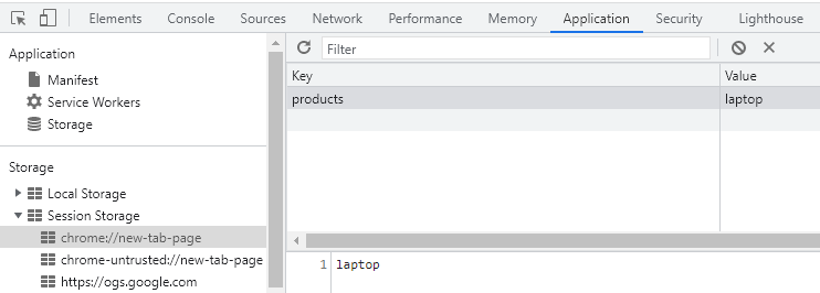 Also, if you want to see where the data of Session Storage is persisted then open the Inspect Tab after pressing F12, and then inside the Application tab and Storage Section there you can see Session Storage and data stored inside that as shown below