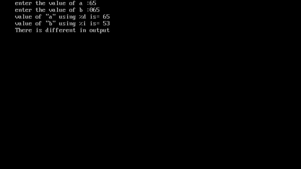 There are differences between %d and %i format specifier. Both specifiers are different, if they are using input specifiers, scanf function will act differently based on %d and %.