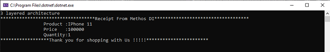 - Console.WriteLine("***********************************Receipt From Methos DI***********************************");
