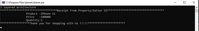 - Console.WriteLine("***********************************Receipt From Property/Setter DI***********************************");