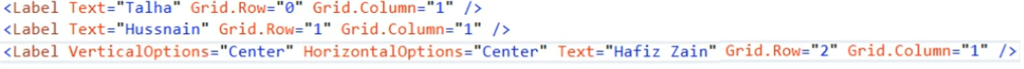 In this code, we can see that in RowDefinition, we give Height in points. The height and width of the whole screen is considered as one. So, we have to assign the values of RowDefinition or ColumnDefinition in such a way that they sum up to be equal to one, as you can see in the above code. We give .5* to both of the ColumnDefinition. Here, the star is used to auto adjust the space between two columns or rows according to their assigned value.