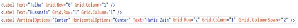 Now, we have added a property Grid.ColumnSpan with a value 2.