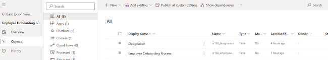 For this application, I’ve created 2 Tables (Designation, Employee onboarding Process)
