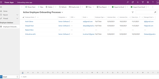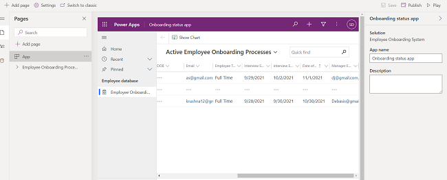 Below is the screenshot of one Data verse Employee Onboarding Process.