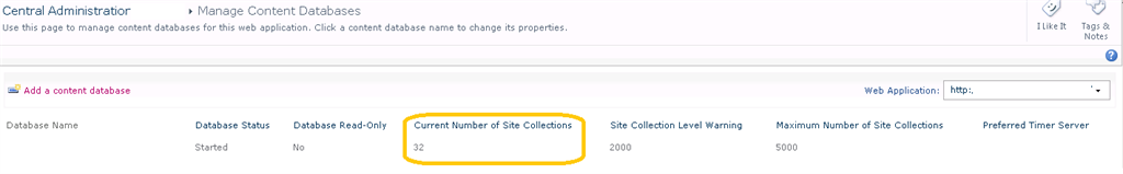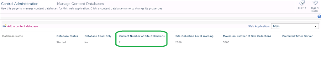 But in-between, if you go to see the "Manage Content Databases" in Central Admin site, sometimes you will see the Current Number of Site Collections is showing 2+30 = 32 sites, when it should be two because your site creation was not successful.