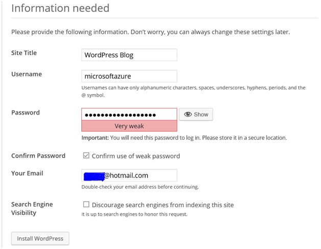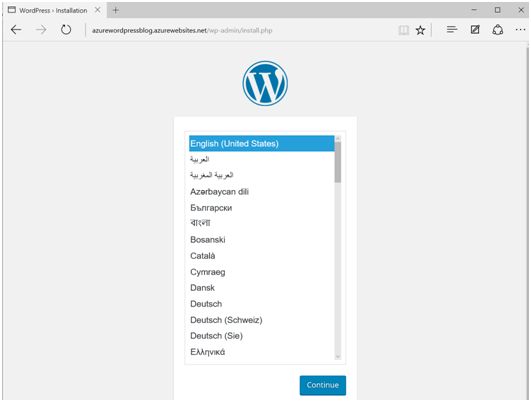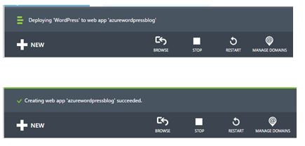 Wait for a few seconds. WordPress installation process is going onto Azure.