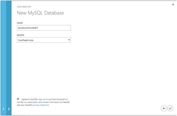 MySQL database name and database region are available. Also you can change the database  name. Tick mark on “I Agree” option.