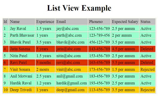 But if I some records are ‘Deleted’ and some are ‘Rejected’ and want to show in  listview with different style then following changes are made.