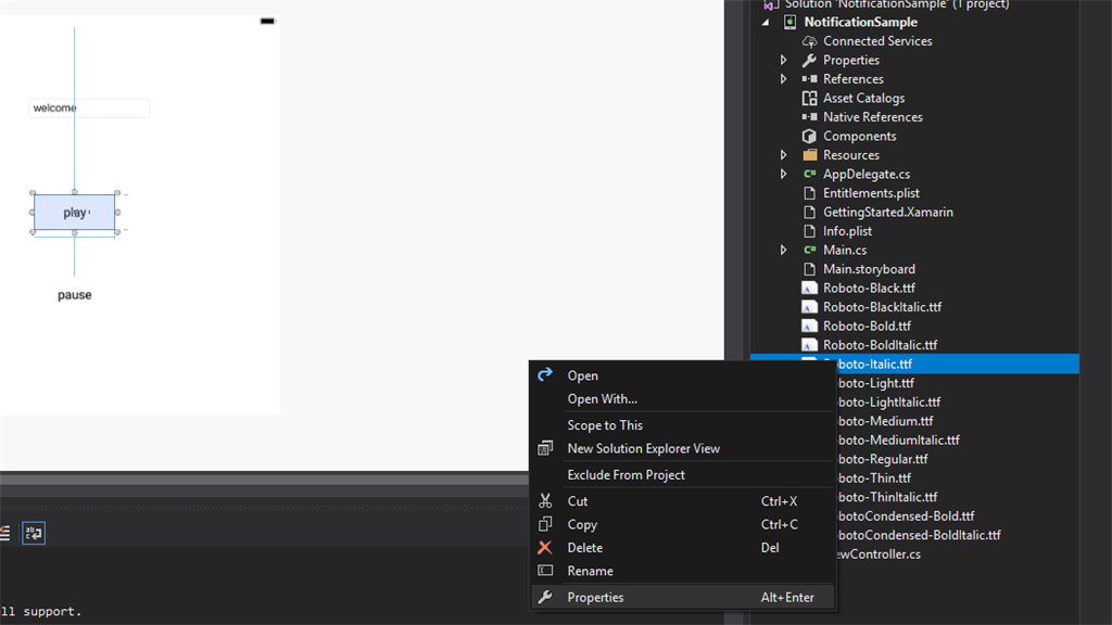 Roboto" font. Download the Roboto fonts that you need and add the fonts to the created project.