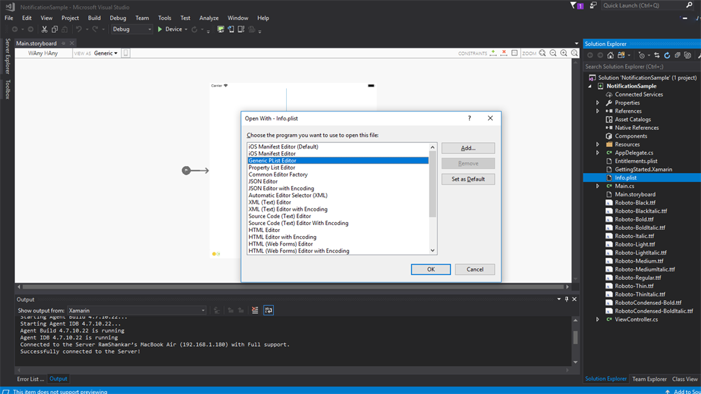 Create a new Xamarin ios app using visual studio. File => new => Project => iphone single view app.