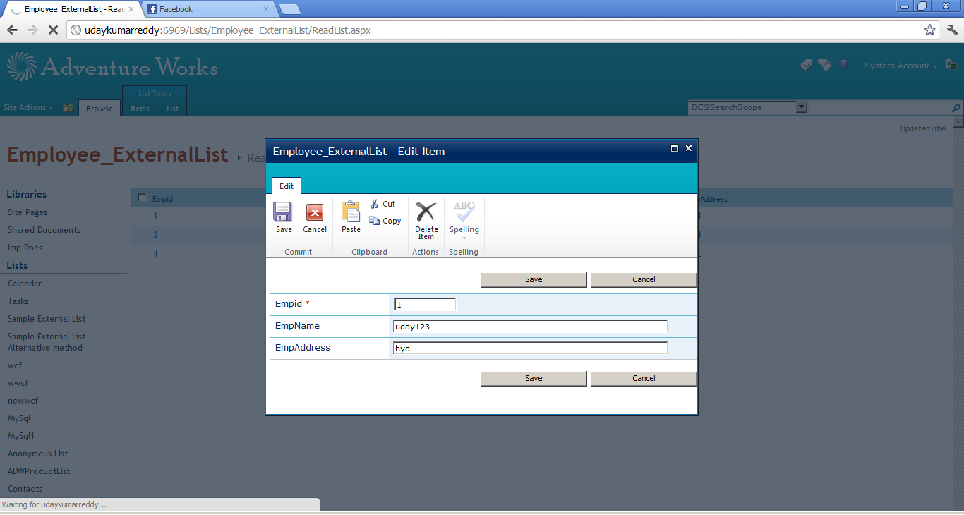 30. Now am try to update the item, click on edit item and modifying field values.