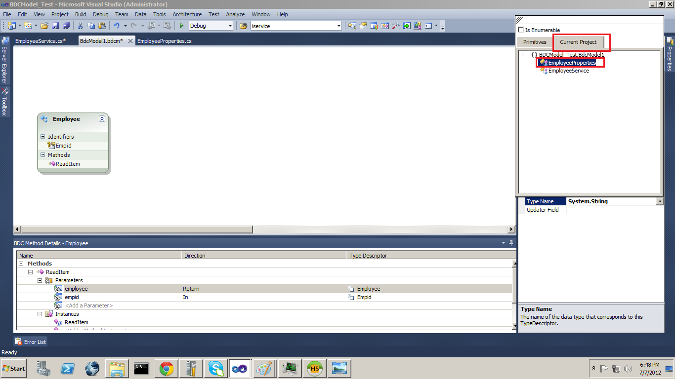 13. now go to BDC Explorer, Expand Employee i.e entity you can find two things one is identifier and Entity object.