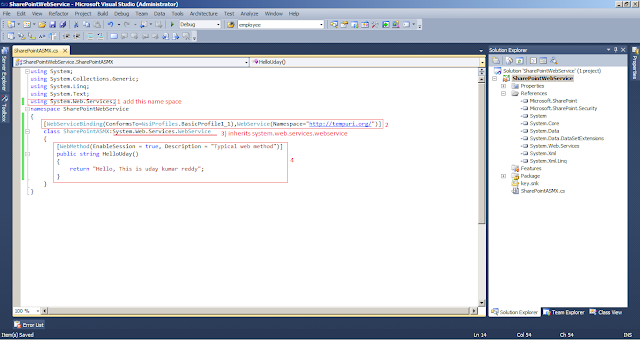 Hi, here am showing how to create , deploy and test sample an asmx web service on sharepoint 2010.