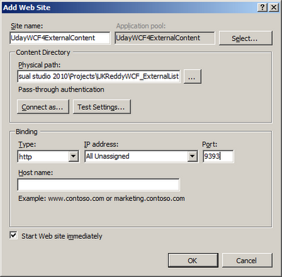 3. After selecting External Data Source Type Selection it will ask for WCF Connection Properties