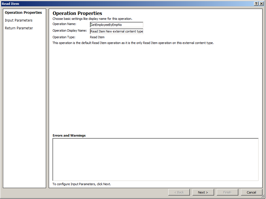 a. Right click on GetEmployeeByNo and select "new Read Item Operation".