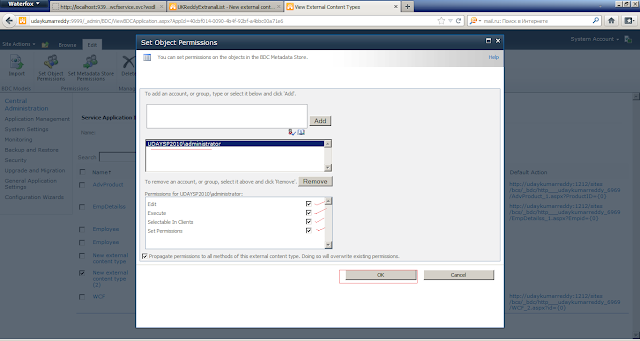 11. Open Central Administration and select Manage Service Application-->Business Connectivity Service.