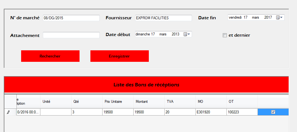 Now I want that when I select a line in datagridview from the checkbox and I click button save I retrieve the line as well as some values