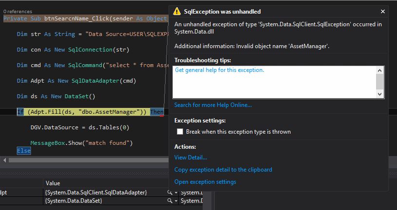 and that the error I get. Actually I have a search button the is supposed to enter name