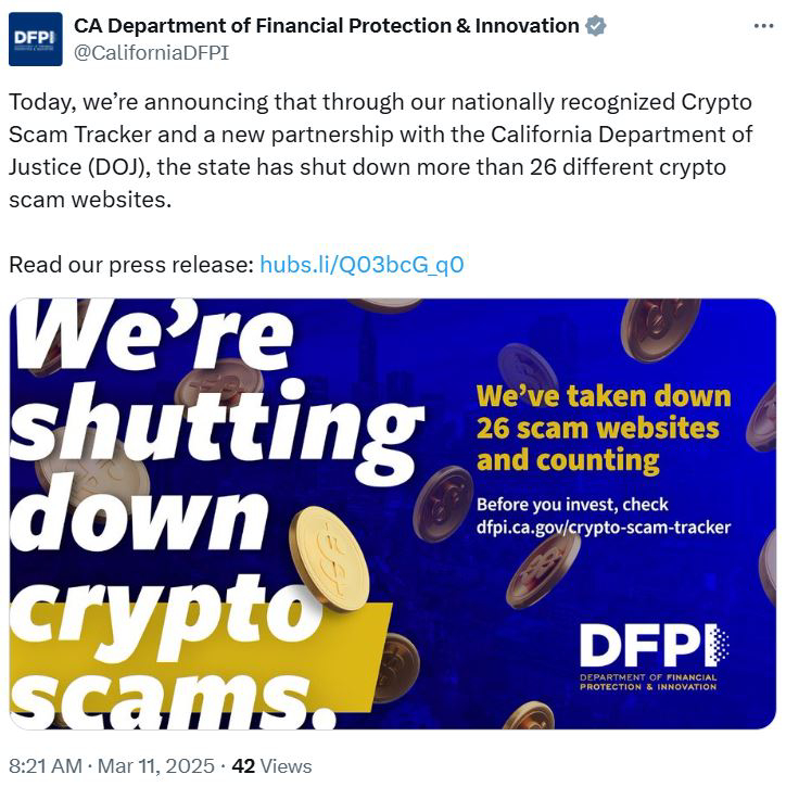 California DOJ Takes Action Against 42 Fraudulent Crypto Sites