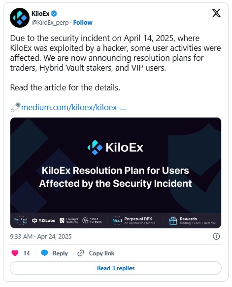 Despite the setback, KiloEx has responded with a proactive and reassuring approach. In an official statement, the team behind the platform expressed deep regret over the incident and pledged to cover the losses of all impacted users. They clarified that a comprehensive investigation is underway, with blockchain security experts being consulted to trace the attack and plug the exploited loopholes. Transparency, they emphasized, will be at the core of their recovery process.
