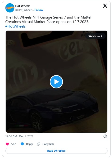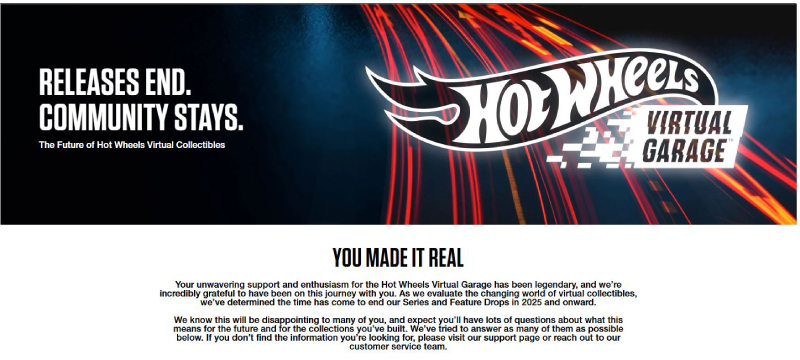 Despite the halt in new releases, the Hot Wheels NFT collection, the Mattel Digital Collectibles Marketplace, community Discord, and other related channels will continue to operate normally at least through 2025.