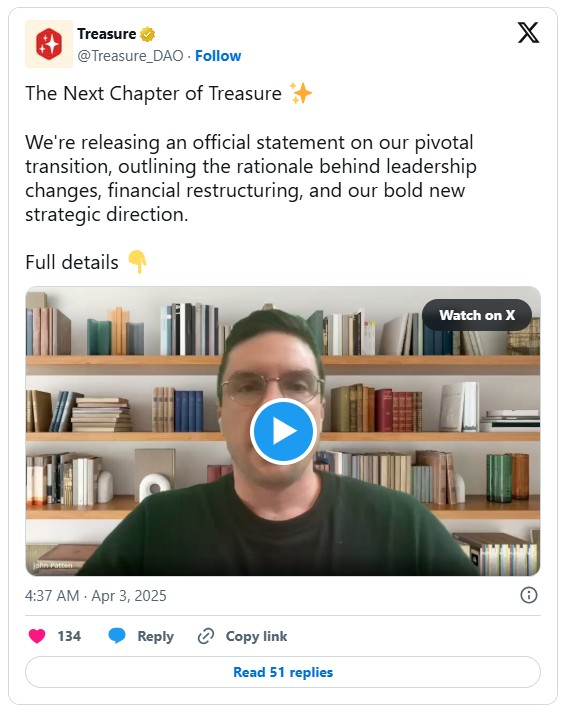 Despite these challenges, Treasure DAO remains committed to maintaining a decentralized ecosystem and ensuring that the value of its native tokens is maximized. The DAO's leadership assured the community that transparency would remain a key priority as the organization works through this transitional phase, promising regular updates on progress and next steps.