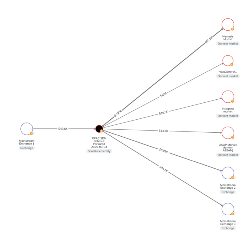 While most of Parsarad’s transactions were tied to Nemesis, he also transferred over $12,000 to other darknet platforms such as ASAP Market, Incognito Market, and Next Generation. Additionally, he had indirect involvement with crypto mixers, according to Chainalysis.