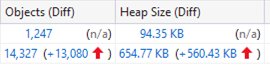 Windows Summary: Here in first snapshot 1247 objects were created and application takes 94.35 KB size