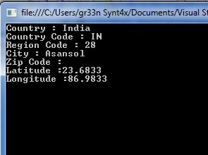 - string apiUrl = "http://freegeoip.net/json/" + IPAddress;