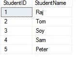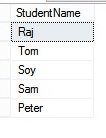 Suppose you have a "Students" table that contains the "StudentID" and "StudentName" Columns (Attributes). The table details five students, and we want to view all the dtable's data. Then, we will use the Select Statement as.