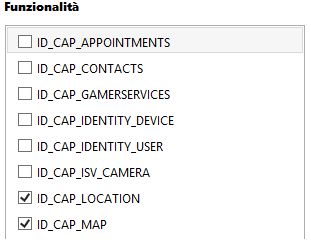 Now that we have both the code and the GUI code-behind, it is time to run the application, but before you start debugging you need to activate the required capability. In exploring solutions, expand the Properties folder and double-click with the mouse on the file WMAppManifest.xaml, go to the features section and activate it if you have not already done so, the Capability ID_CAP_MAP and ID_CAP_LOCATION as shown in the figure.