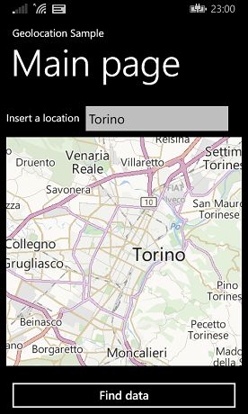 Now we type the name of a city, such as Turin or what that you want. Taking a tap on the Find data button, if all goes well, will start searching through the control Nokia Maps and see the center of the town on the map.