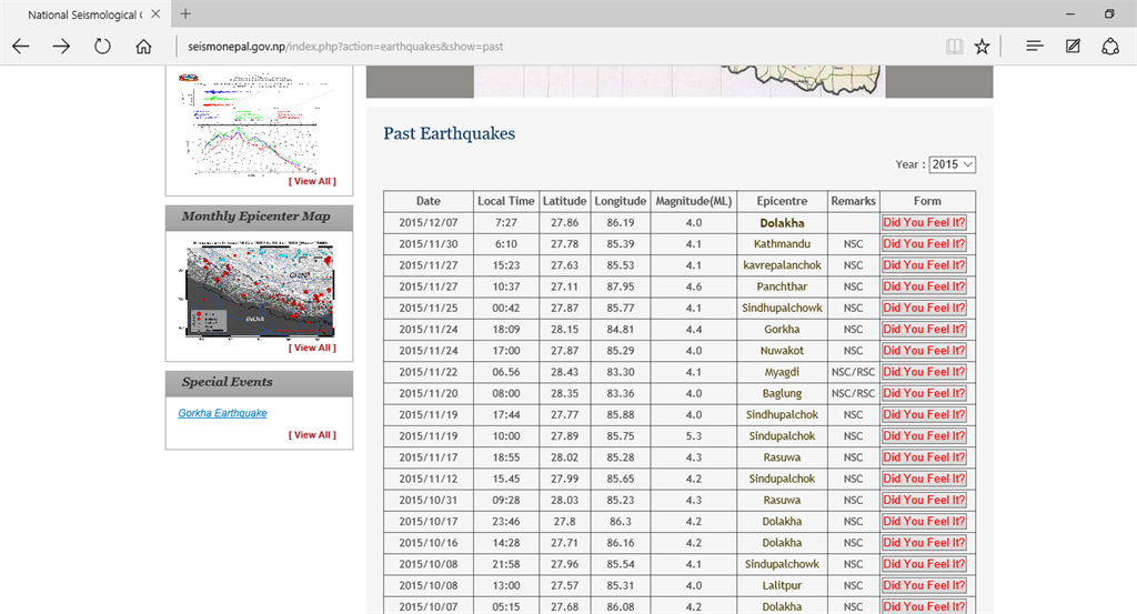 For this demo, I am analyzing the data from this link, which list the past earthquakes that has occurred in Nepal. Put in the URL and click OK.