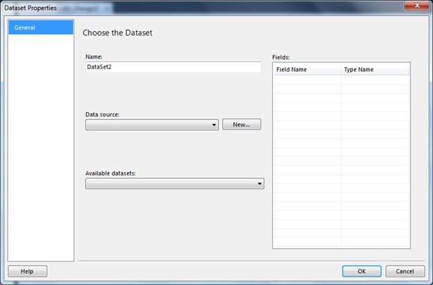 After adding a Dataset in the Report Tab you will see the Dataset and the fields in it.