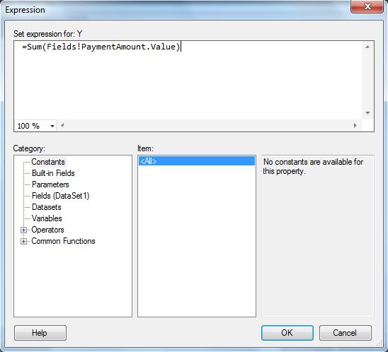 At the top you will find the Sum of Payment amounts but we have already done a sum in our query; we don't require this to be removed, just right-click on those fields and select Series Properties.