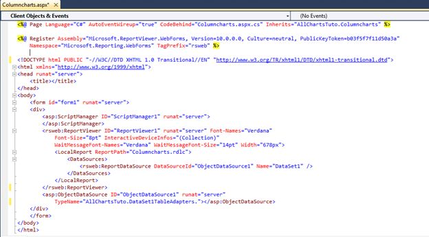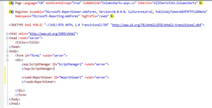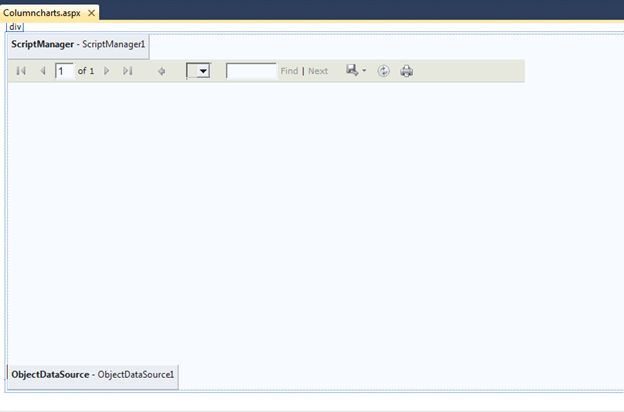 For this I will go to the Columncharts.aspx page and go to my desgin view; the following view will appear: