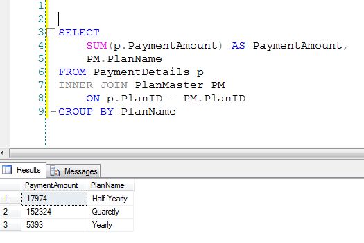 - Query = "SELECT SUM(p.PaymentAmount)as PaymentAmount,PM.PlanName FROM PaymentDetails "