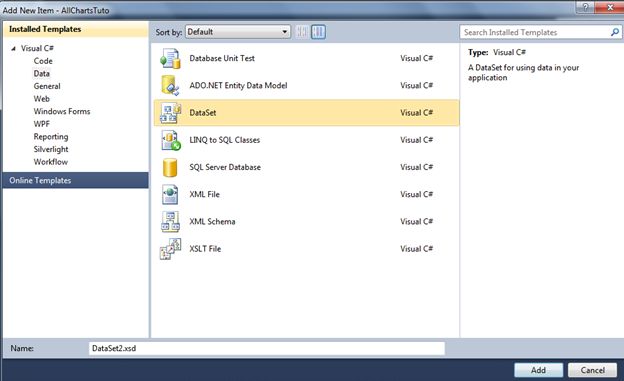 From the Installed Template select Data and inside that select Dataset. Keep the name as it is.