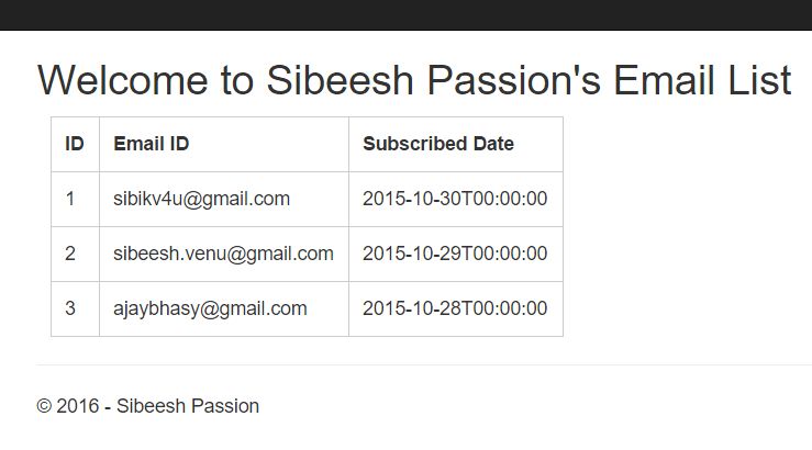 In this article, we will learn about CRUD operations in Web API using AngularJS. We will use Visual Studio 2015 to create a Web API and perform the operation. In this project we are going to create a database and a table called tbl_Subcribers which actually contains a list of data. Here we will use Angular JS for all of our client side operations. If you are new to Web API, please read how to retrieve the data from database using Web API here. I am going to explain the complete process in a step by step manner. I hope you will like this.