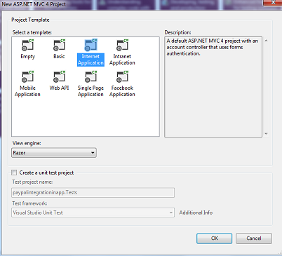 Open your Visual Studio, go to the file menu, select New, go to Project, choose ASP.NET MVC application then provide it an appropriate name and click on the OK button.