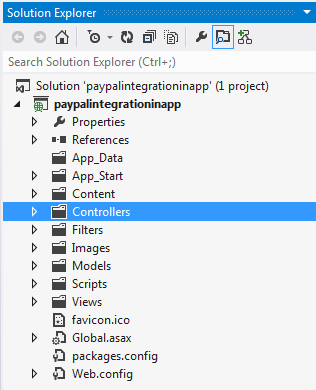 Then our solution is ready. It has some folders like Controller, Views, Models and so on. It looks as in the following picture.