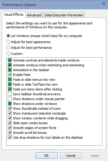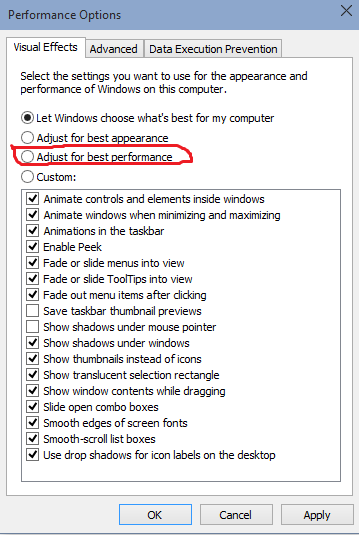If you do not want to uncheck these check boxes manually then you can choose the second option to use the radio button to Adjust for best performance.