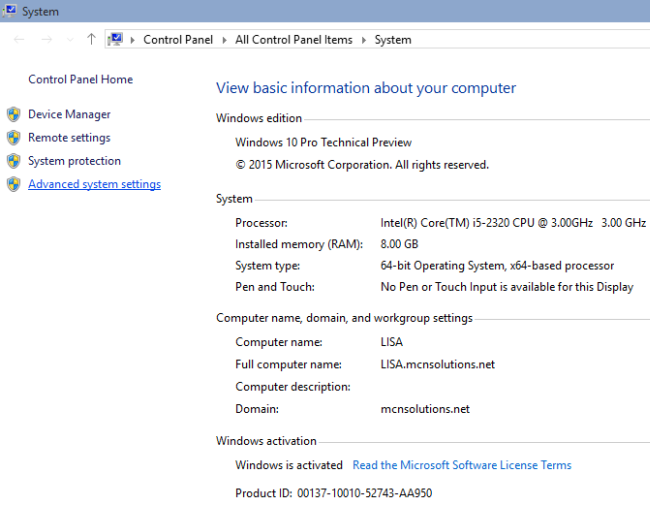 Go to the PC icon, right-click on it, go to the property. You can also use the sysdm.cpl command in the Run (Win +R) prompt for getting the system properties windows.