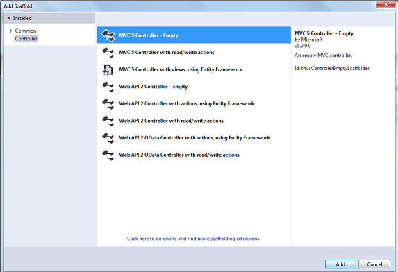 When we add the controller to our web project the code of the controller will be similar to the following code.