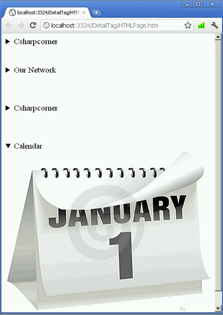 When you click on Csharpcorner or the Our Network header, the content of the detail tag will display like the following figure 2.