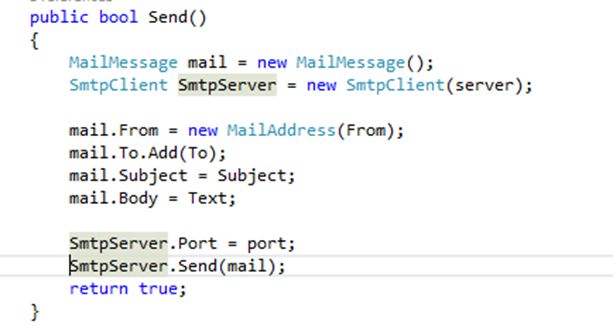 This is pretty simple code that only uses “System.Net.Mail”. This piece of code is very common that we generally use to send email using a SMTP server. So the point here is we don't need to rewrite the code again for the actual live SMTP server configuration changes; just make a few changes and we are done.