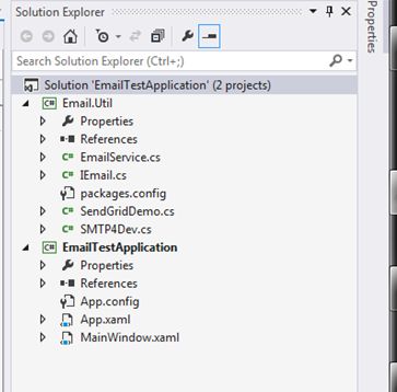 The solution contains two projects, one for the email service and the other one is the WPF application.