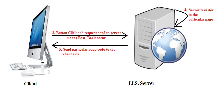 Then after the button is clicked it will post-back the request to the server. At that time the server will directly transfer to that specific page, compile that page code and send it back to the client.